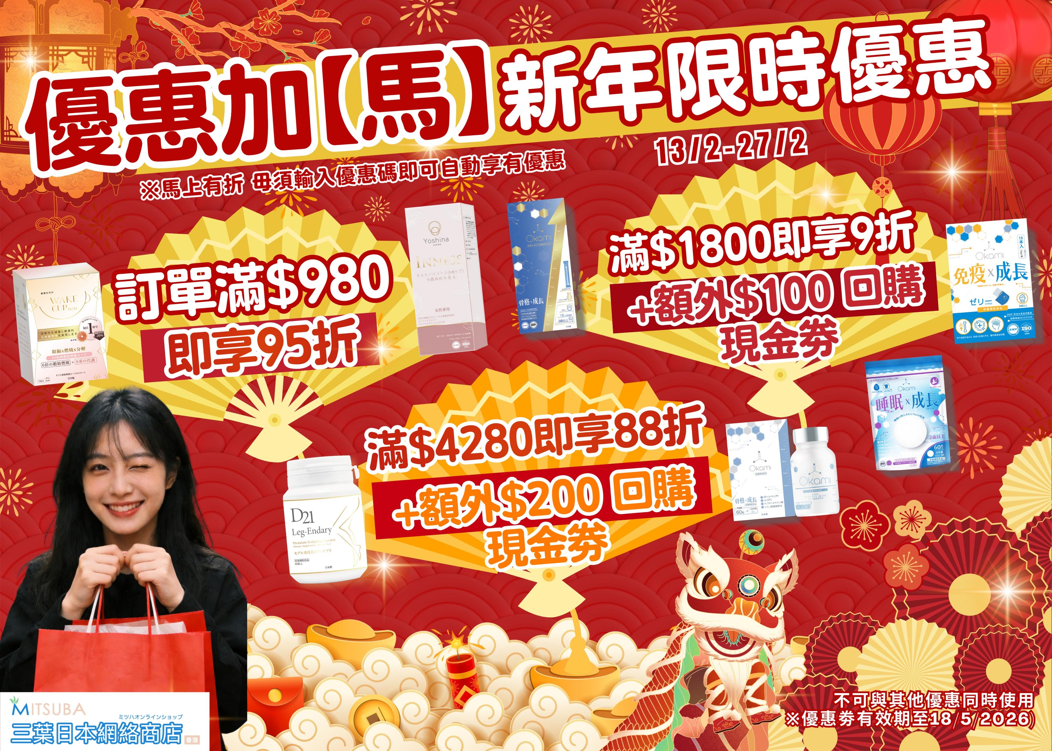 | OKAMI 大神長骨素 | OKAMI 成長免疫啫喱 | Inness 祛痘美肌飲 | WAKE CUP SLIM | D21 速效瘦腿丸 | |