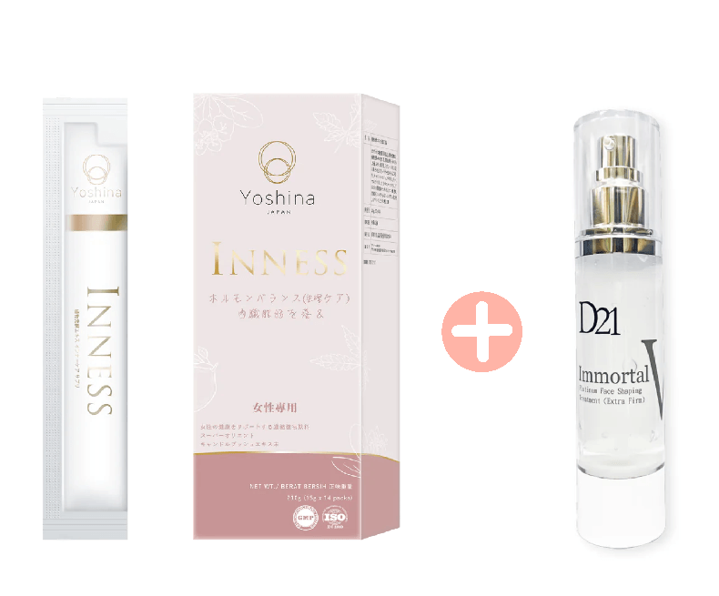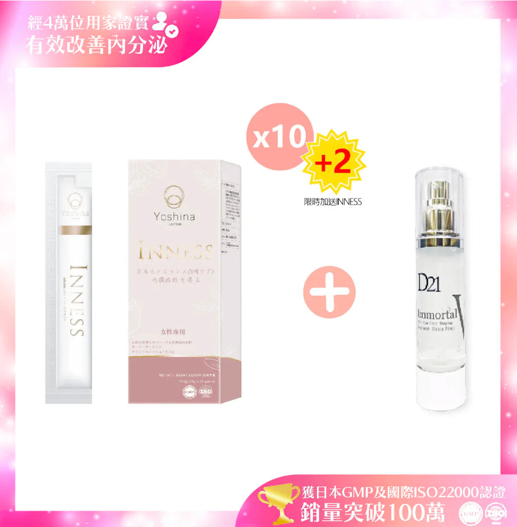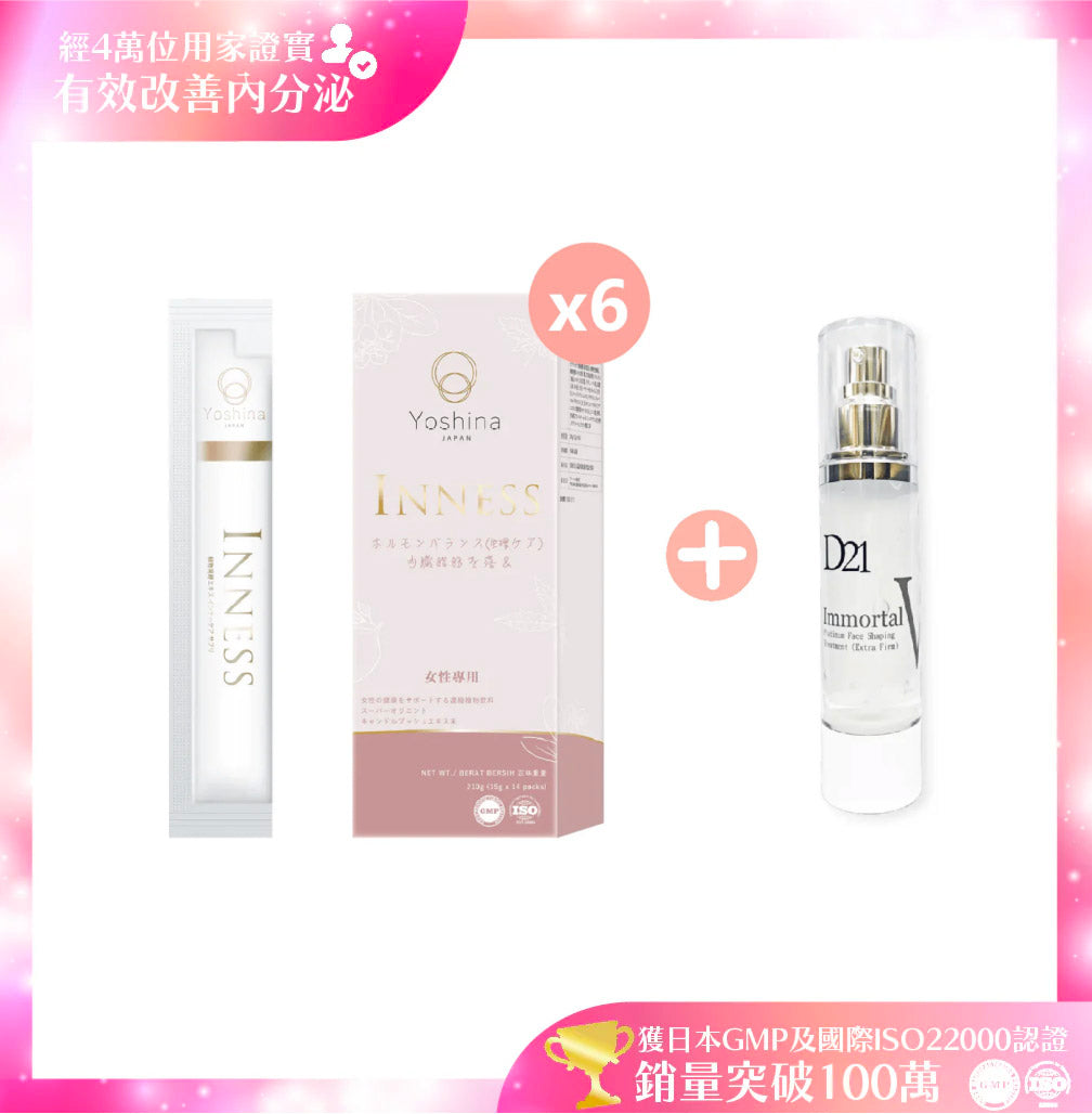 INNESS 日本祛痘美肌飲突破傳統中藥調理觀念,集結108種珍貴植物成分,為濃縮的日本貴婦級口服植物精華飲,一包取代傳統中藥調理。從內而外調理體質,調節荷爾蒙分泌,改善油脂過盛和皮膚新陳代謝,全面呵護女性肌膚健康。